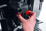 Bestimmte Teile des Kaffeevollautomaten erfordern eine regelmäßige Reinigung. Dazu gehören neben den leicht abnehmbaren Teilen wie Abtropfschale, Wassertank oder Milchbehälter auch Teile aus dem Inneren der Maschine wie beispielsweise die komplett herausnehmbare Brüheinheit. Die Reinigung erfolgt manuell und ohne chemische Zusätze, Alkohol, Scheuer- und Lösungsmittel. In den Geschirrspüler darf ausschließlich der Milchbehälter.