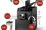 Der Kaffeeauslauf kann von 11,2 bis 15,2 cm eingestellt werden, sodass kleine und große Tassen verwendbar sind. Die Brühgruppe kann von der Seite aus herausgenommen und leicht entfernt werden, damit Du sie unkompliziert reinigen kannst. Große Kaffeesatz-, Wasser- und Bohnenbehälter in kompaktem Design sind vorteilhaft, denn so wird das Nachfüllen reduziert. Der intelligente Philips HD8829/01 Kaffeevollautomat bietet höchsten Komfort, eine ausgezeichnete Leistung und großes Fassungsvermögen in jeder Hinsicht. Die Reinigung und Entkalkung erfolgen automatisch.